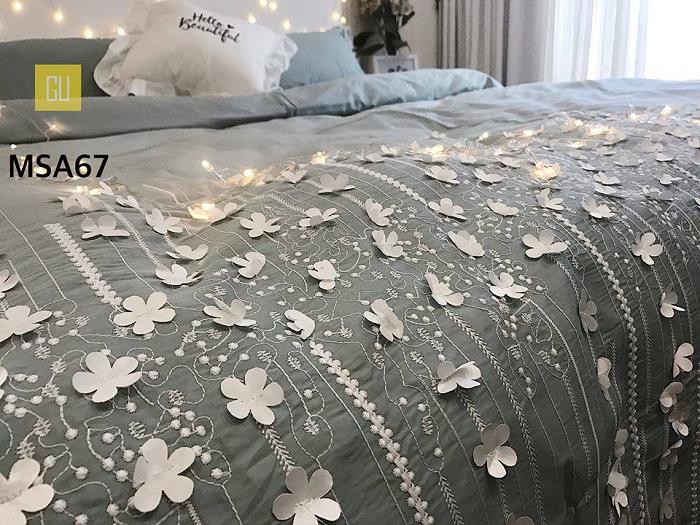Trong khi đó, phòng ngủ của bố mẹ có thể lựa chọn các mẫu hoa văn tinh tế, thanh nhã, hiện đại hay ga vải silk sang chảnh, tinh tế với những đường thêu thủ công cầu kỳ, tỉ mỉ.