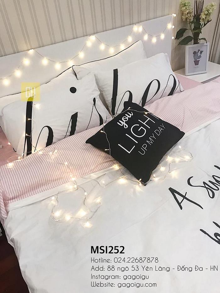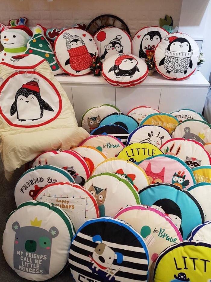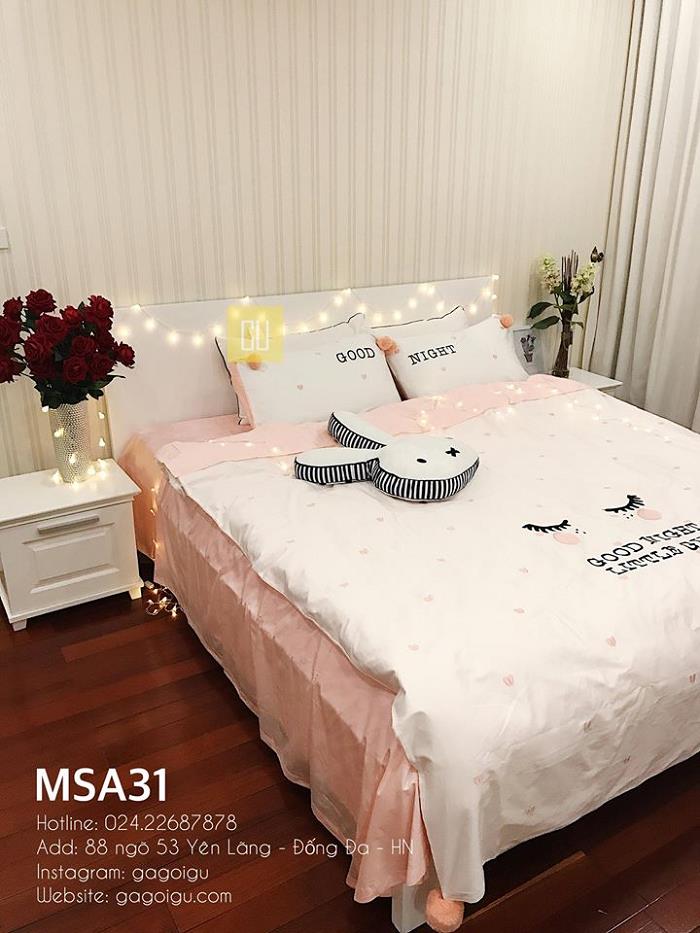 Các bạn nữ nhất định sẽ “đổ gục” trước những ga giường màu hồng, trắng được trang trí dễ thương cùng những chiếc gối ôm hình con thỏ, trái tim vô cùng đáng yêu.