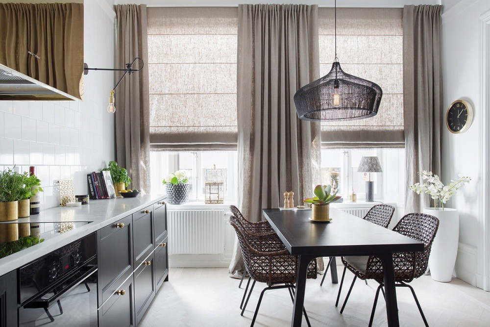 Nhà bếp thực sự là không gian đậm chất hiện đại với sự kết hợp giữa gam màu đen trắng. Đặc biệt, sự góp mặt của những món đồ mạ đồng lại càng khiến căn phòng tinh tế và cuốn hút hơn. Khác với nhà bếp và phòng khách, những không gian riêng tư như phòng ngủ hay nhà tắm được thiết kế với một diện tích vừa phải.