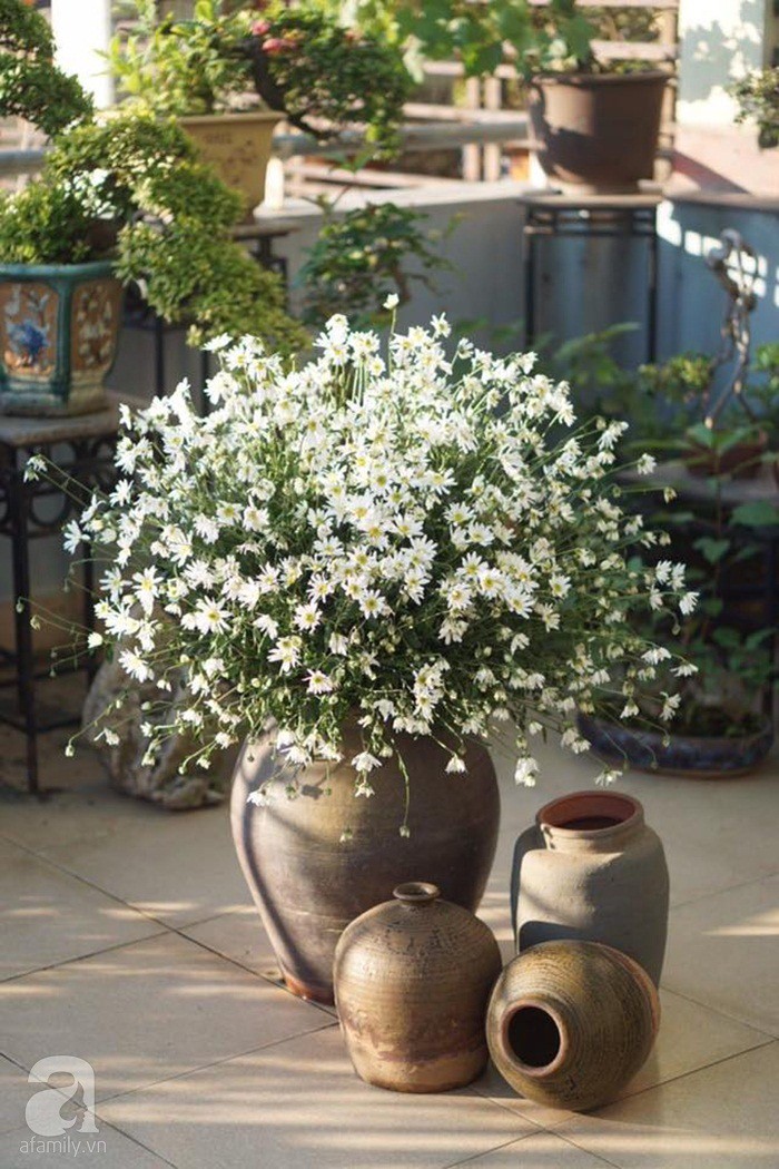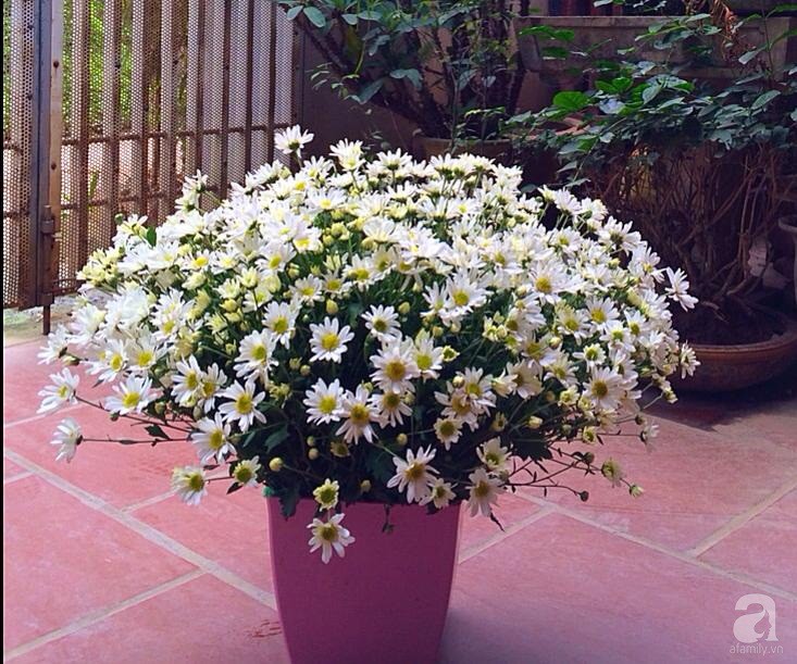 Cạnh ban công, một bình hoa cúc họa mi là đủ để giúp không gian thêm duyên dáng. (Ảnh Phương Mai Thi Lan)