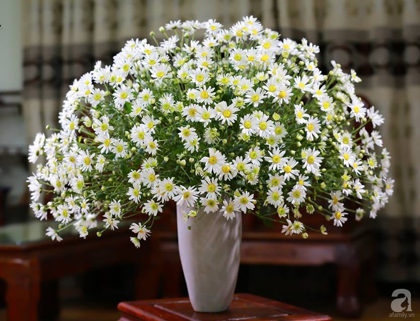 Không cần cầu kỳ trang trí không gian, một bình cúc họa mi cũng đủ làm ấm lòng người Hà Nội. (Ảnh Nguyễn Thu Hà)