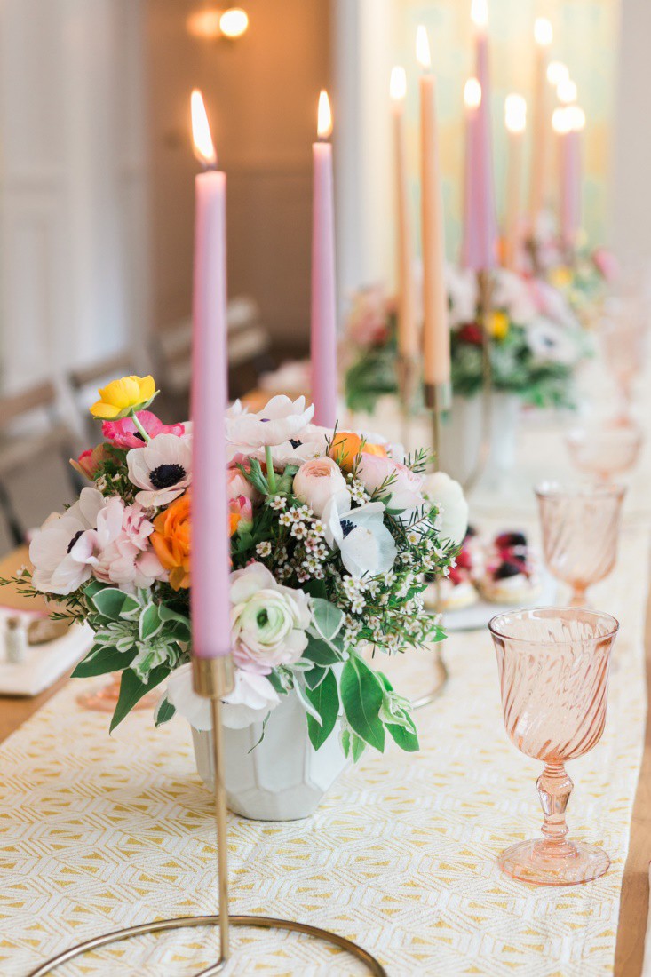 Mỗi chiếc lọ thủy tinh nhỏ xinh này chỉ cần cắm 1-2 bông hồng chúm chím và gom chung lại trên mặt bàn thế này là khiến bàn ăn của gia đình bạn muôn phần xinh xắn hơn.