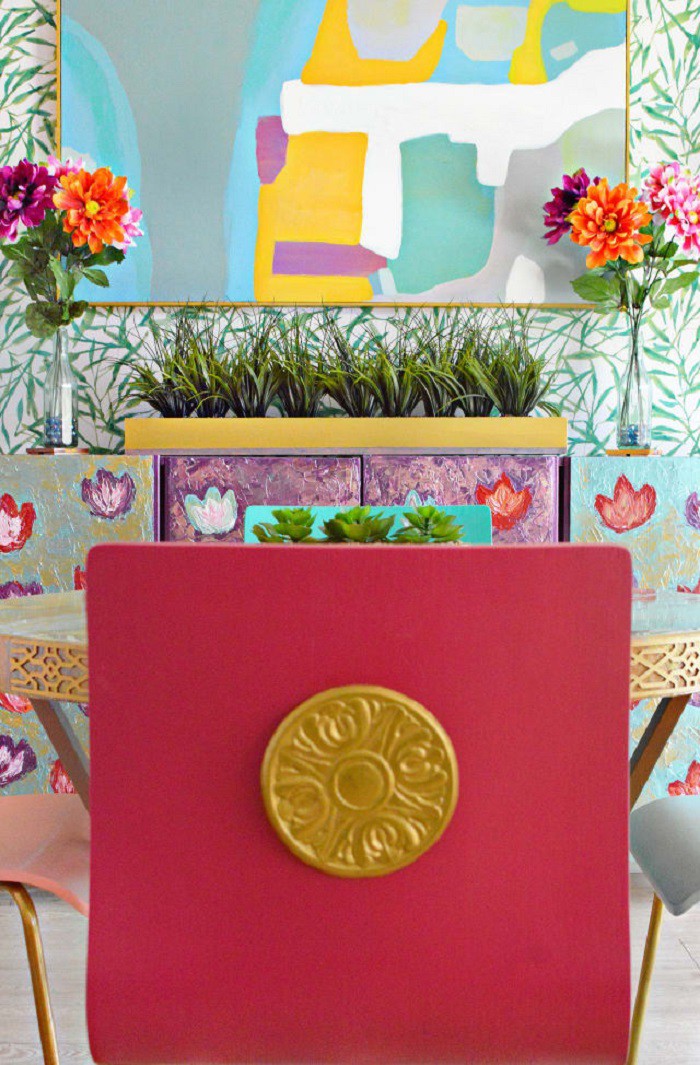 Anam Zohaib yêu màu sắc tươi sáng và táo bạo nên đã cố gắng kết hợp rất nhiều bảng màu trong phòng ăn từ tường cho đến đồ nội thất.