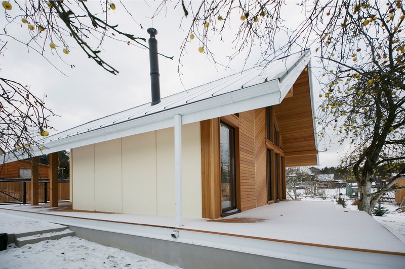 Kiến trúc sư Zrobym của hãng nội thất Minsk đã hoàn thành thiết kế ngôi nhà tại làng Raubichi, Belarusvào đúng lúc mùa đông bắt đầu. Ngôi nhà làm bằng gỗ này có tổng diện tích rơi vào khoảng 73m2 với các không gian sống được chia nhỏ ra các khu, giống như một quần thể. Mỗi không gian lại mang một nét cá tính, độc đáo riêng. Nhưng tựu chung lại, điểm nổi bật nhất của nó mà bất kỳ ai cũng dễ dàng nhận thấy chính là việc chủ nhân sử dụng toàn bộ chất liệu gỗ làm khung chính của ngôi nhà.