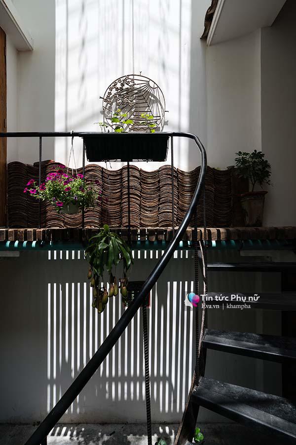 Gạch ngói là một chất liệu được sử dụng nhấn nhá trong căn nhà.