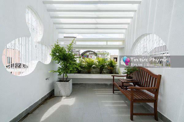Ngôi nhà được bố trí với các khoảng giếng trời và cây xanh phù hợp đem lại nguồn sinh khí ngập tràn tự nhiên.