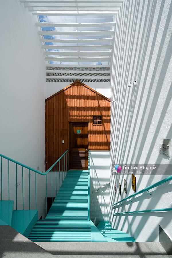 Ngoài ra, việc khéo léo chia ngôi nhà thành 2 khối nhà riêng biệt nhưng vẫn tạo nên sự kết nối bằng khoảng không gian chung cùng những chiếc cầu thang màu sắc cũng là một điểm nhấn vô cùng ấn tượng.