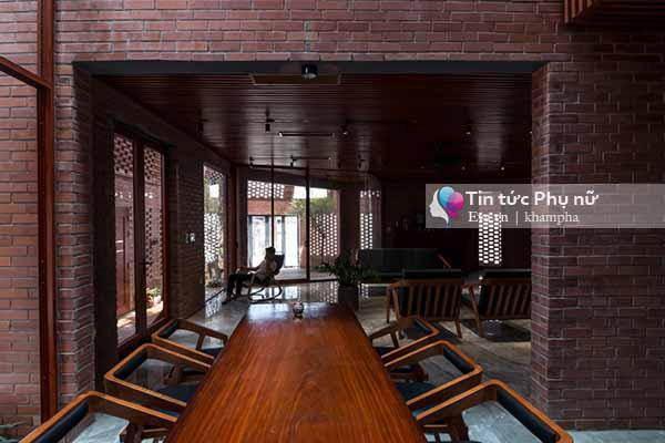 Được thiết kế với mạch cảm xúc được kết nối giữa truyền thống & hiện đại, phía ngoài, ngôi nhà được bao bọc bởi mái ngói đỏ, tường gạch mộc, trông giống như một lò gạch cũ. Tuy nhiên, bên trong lại là một không gian rộng mở đầy ánh sáng, gió và thoáng đãng.